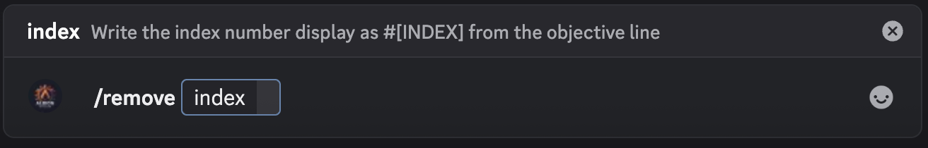 index | Number | Yes | The index number of the objective to remove (shown in /list output) |